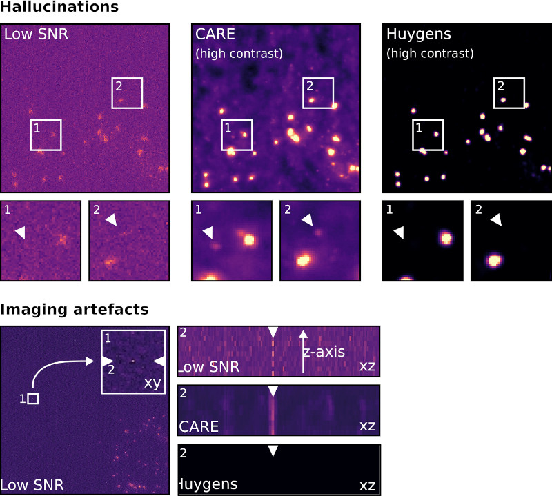 Overall, Deconvolution is a more reliable method for noise reduction in microscopy images compared to AI-denoising.