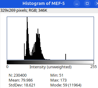 Next: let’s checkout the histograms of all 6 images. In Fiji, go to: Analyze > Histogram (or Press H)