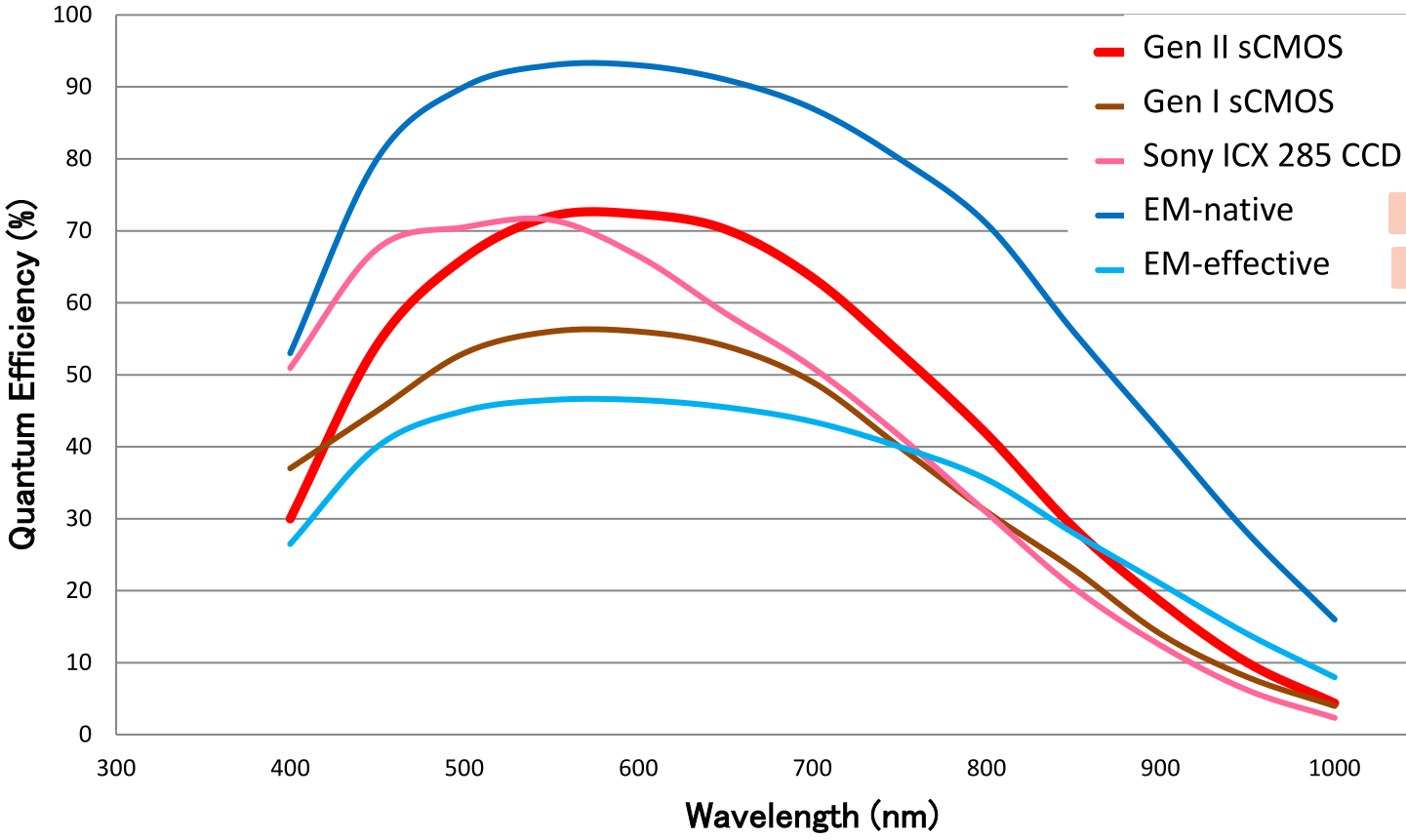 scientific CMOS sensors combines high QE with fast frame rates and low noise, which translates into high speed, high-resolution biological images, even in low light situations.
