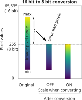 image processing filters (e.g. Gaussian blur, median filter, gamma etc.). Original image must be used for intensity measurement.